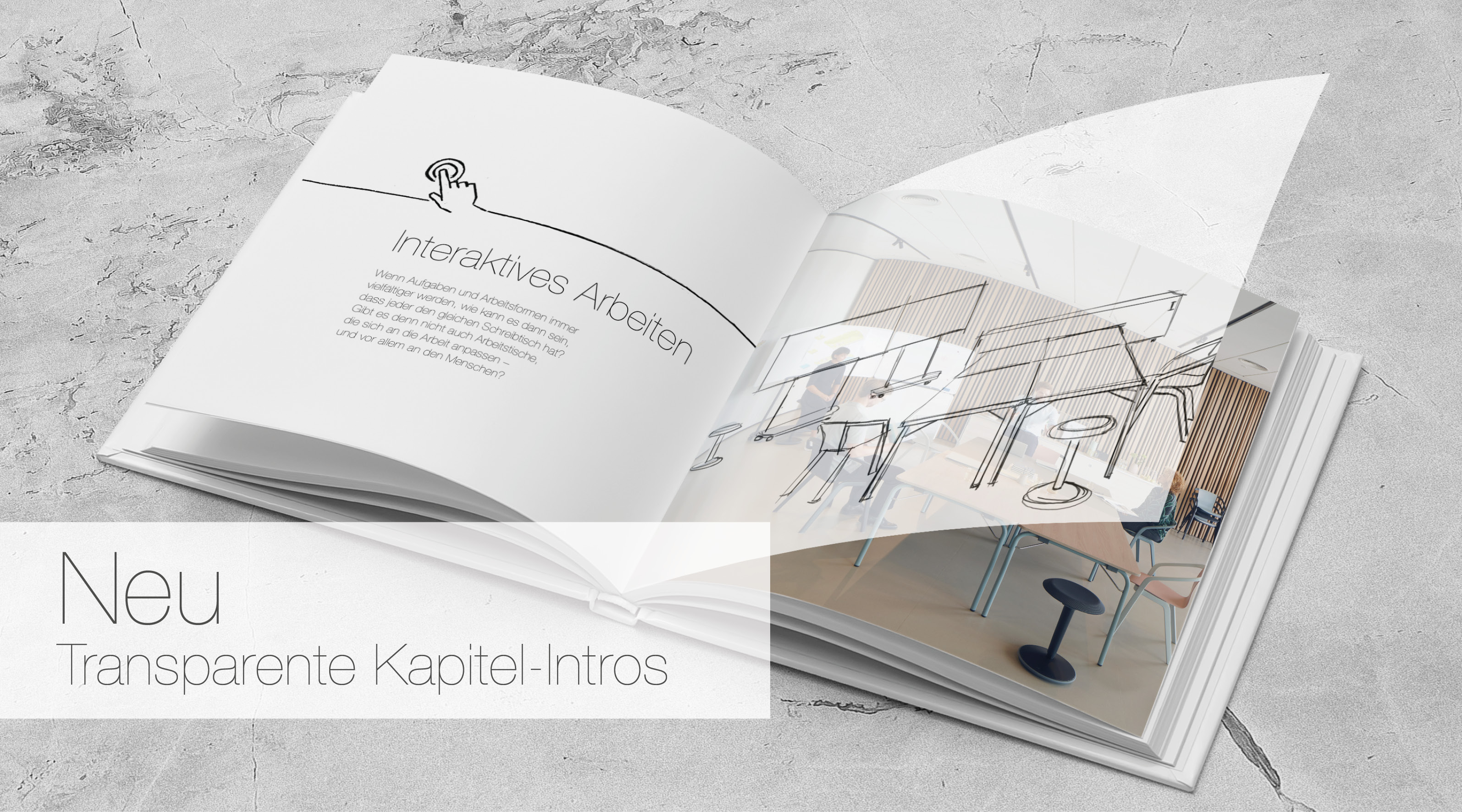 Ausführend mit neuen transparenten Kapitel-Intros, ganz dem Stil der Kreativität und Konzeption gewidmet.